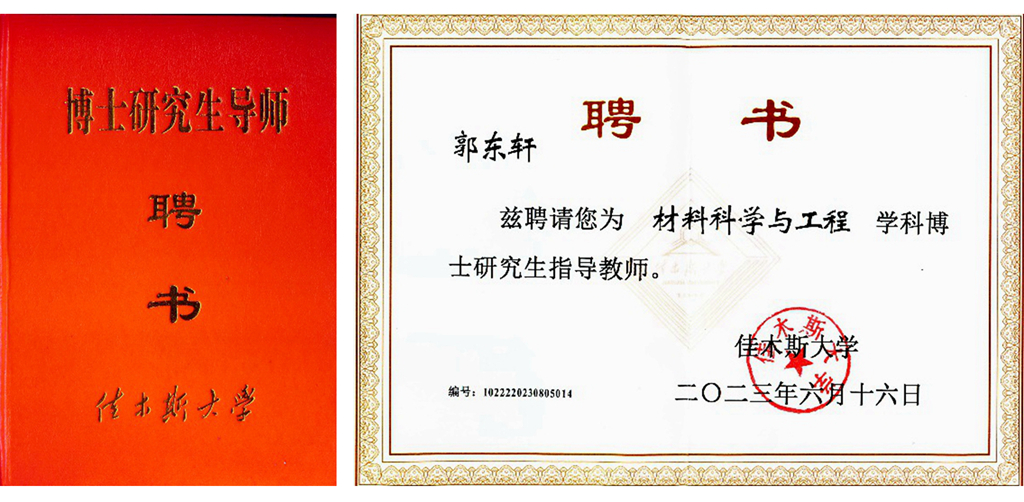 2020年,郭東軒以主要研究方向負責人身份加入黑龍江省精細化學品催化合成重點實驗室研究團隊從事科研工作。其所在研究團隊圍繞催化新材料的研制與開發、催化精細有機合成、儲能材料及分離技術方向進行基礎性研究和應用基礎性研究工作,致力于推動我省石油化工產業轉型升級,延伸石化加工產業鏈,提升化工產業精細化工率。在團隊中,郭東軒充分展示出青年科研工作者的實力與活力。2021年底,他主持“基于小尺寸應變型MXene的鈉離子電容器性能研究”項目獲中央支持地方高校改革發展資金人才培養項目資助;2021和2022連續兩年潛心申報國家自然科學基金,項目“晶格應變與微觀孔隙協同調控MXene的構筑及鈉離子電容器動力學與儲能機理研究”于2022年獲國家自然科學基金青年基金資助。入職后的3年內,他以通訊作者在《Small》《ACS Appl. Mater. Inter.》《J. Colloid Interf. Sci.》《J. Energy Storage》等國際知名期刊發表SCI檢索學術論文37篇,其中中科院二區以上論文32篇,所發表文章Google學術引用超過1500次,獲授權國家發明專利1項。同時,他還擔任《Small Methods》《J. Energy Storage》《ACS Appl. Nano Mater.》等國際知名期刊的審稿專家。此外,郭東軒已培養多名優秀碩士研究生,多名同學赴哈爾濱工程大學、黑龍江大學、青島大學、燕山大學等知名高等院校攻讀博士學位,這充分展示了郭東軒及所在團隊科研育人的實效。此外,郭東軒與北京大學深圳研究生院、上海交通大學、美國加州大學洛杉磯分校、加拿大滑鐵盧大學等國內外頂尖院校的相關研究團隊建立了良好合作關系,開展學術交流,本著優勢互補、互惠互利、資源共享、共同發展的良好愿望,積極推進產學研合作,共同打造產學研示范基地,走出一條合作共建、互惠共贏的新路子,促進雙方人才培養、科技創新能力的提升。2023年6月,他被佳木斯大學聘請為材料科學與工程學科博士研究生指導教師。