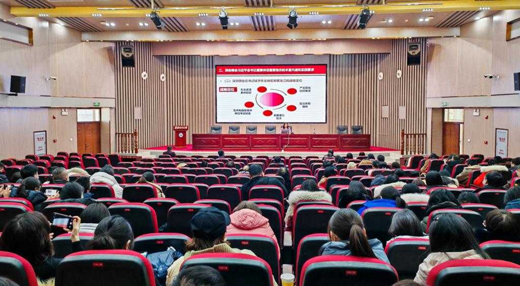 立時代之潮頭,發思想之先聲。為全面深入學習宣傳貫徹習近平總書記視察我省期間重要講話重要指示精神,教育引導全校師生員工錘煉“扎扎實實、踏踏實實、求真務實”的優良作風,切實把思想和行動統一到習近平總書記重要講話重要指示精神上來,按照學校相關文件部署安排,我校第一時間遴選黨員干部、專家學者、思政教師、學生骨干,組建了習近平總書記視察我省期間重要講話重要指示精神專家宣講團、青年學生宣講團和齊齊哈爾大學駐永安村宣講小分隊。2023年12月以來,我校習近平總書記視察我省期間重要講話重要指示精神宣講團成員深入黨員干部、師生和基層群眾,以對象化、分眾化、互動化的方式開展了一系列學習宣講活動,形成了“黨員干部帶頭講、專家學者深入講、青年學生自己講、深入基層群眾講”的生動局面,掀起了學習宣傳貫徹習近平總書記視察我省期間重要講話重要指示精神的熱潮。