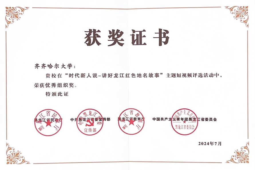 為深入學習宣傳貫徹黨的二十大精神,持續鞏固拓展主題教育成果,加大龍江地名文化宣傳力度,深入挖掘地名檔案資源價值,由省民政廳、省委宣傳部、省教育廳、團省委聯合主辦,黑龍江日報報業集團、省民政資料檔案館共同協辦的“時代新人說——講好龍江紅色地名故事”主題短視頻征集宣傳展示活動在去年7月火熱啟動。活動發布以來,全校師生積極參與,講述龍江地名故事,傳承紅色基因。經活動組委會初篩海選,我校共入選3個作品,最終榮獲優秀組織獎。