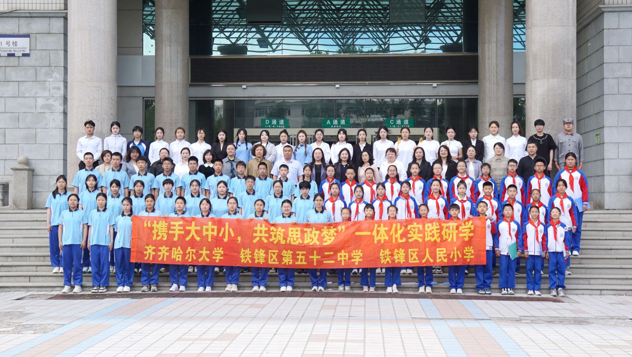 6月5日,我校成功舉辦大中小學(xué)思想政治教育一體化建設(shè)實踐研學(xué)活動,市第五十二中學(xué)、鐵鋒區(qū)人民小學(xué)60余名師生代表以及我校師生代表共計百余人參與其中,校黨委書記丁宏、黨委副書記齊宏偉參加活動。