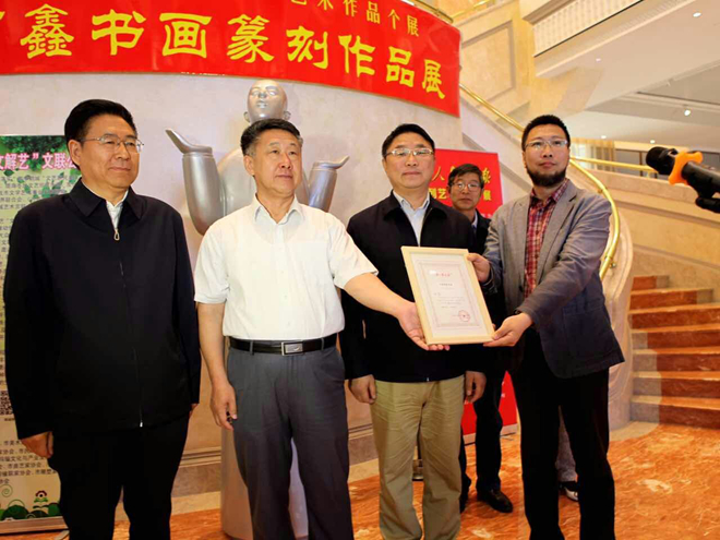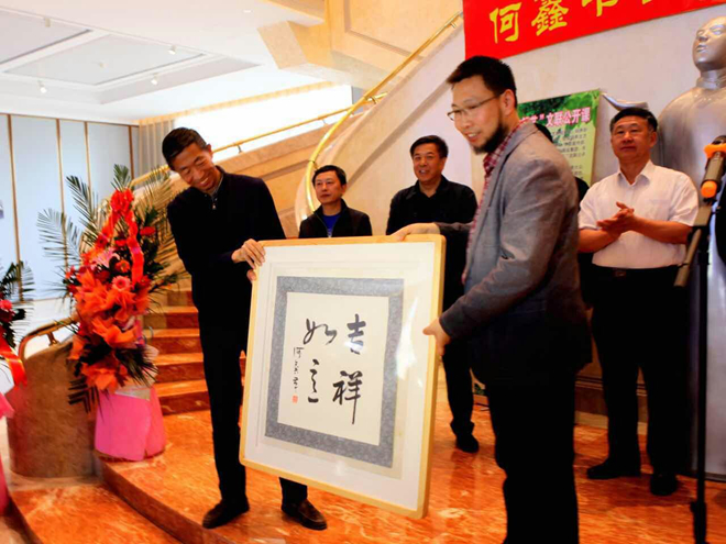 開幕式上張戈、高景洲、馬立群共同為何鑫頒發了展覽榮譽證書。李國勝代表鶴城藝術宮接受了何鑫捐贈的書法作品。齊齊哈爾市文化藝術界知名人士、齊齊哈爾大學師生、廣大書畫愛好者、新聞媒體近三百人參加活動。