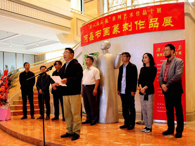 高景洲在講話中說,今天舉辦個展的何鑫先生,既是齊齊哈爾大學書法專業帶頭人、學科帶頭人,也是國家級會員、省書法家協會副主席、“德藝雙馨書法家”。“向人民匯報”系列藝術作品個展是我市“四季鶴城”文化惠民的品牌活動。旨在通過長期舉辦個展,為本土優秀藝術家提供展示平臺,豐富市民文化生活,推動藝術創作,展示齊齊哈爾厚重的文化底蘊,讓社會各界更加熟知本土藝術家,使文藝精品更加貼近基層、走近人民大眾,讓文藝創作成果更多惠及基層百姓。