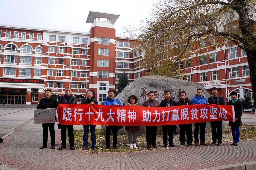 為深入貫徹落實黨的十九大精神和習近平總書記關于脫貧攻堅的重要論述、重要指示精神,按照學校黨委《關于學習宣傳黨的十九大精神的通知》要求,11月1日,中共齊齊哈爾大學科技處、產業處、學術理論研究部聯合黨支部一行11名黨員,在支部書記伊全勝的帶領下,赴甘南縣甘南鎮富余村開展基層支部黨日共建活動暨脫貧攻堅講習所揭牌儀式。