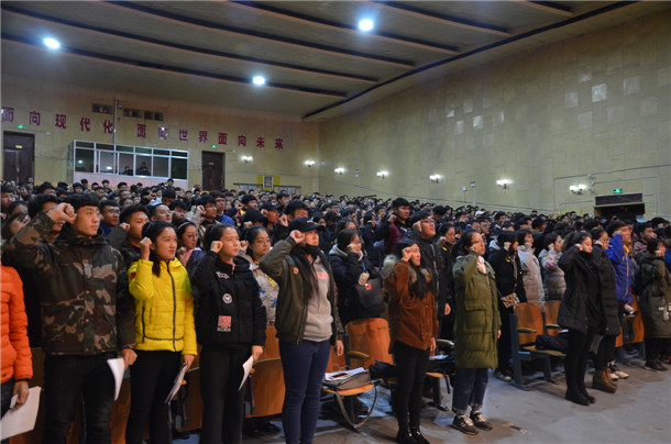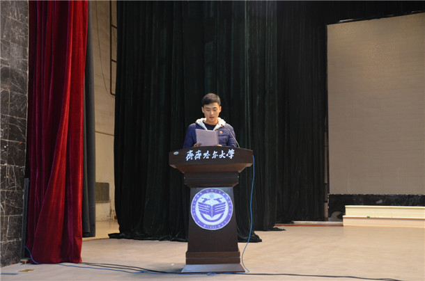 文學與歷史文化學院歷史專業172班宋健朝代表此次申請國家助學貸款的學生在大會上發言,并帶領與會全體同學進行了誠信宣誓。