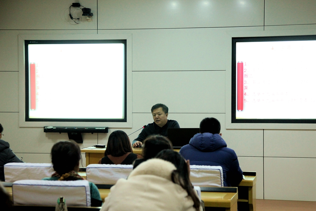 在東區圖書館8樓報告廳,校黨的十九大精神宣講團成員、哲學與法學學院政治學與行政學專業徐鳳江副教授以《深入推進新時代黨的建設的偉大工程》為題,在講述了新時代全面加強黨的建設的必要性、黨的十八大以來黨的建設的重要手段、措施及成就后,著重解讀了新時代黨的建設的總要求、新時代黨的建設的八項重點任務。他指出,學習領會黨的十九大精神,要緊緊圍繞習近平新時代中國特色社會主義思想這個主線,堅持讀原著、學原文、悟原理,做到學深悟透。通過學習引導全黨自覺維護習近平總書記作為黨中央的核心、全黨的核心地位,維護黨中央權威和集中統一領導。把師生的思想和行動統一到黨的十九大精神上來,把力量凝聚到黨的十九大確定的各項任務上來。圖書館全體教職工參加了宣講活動。