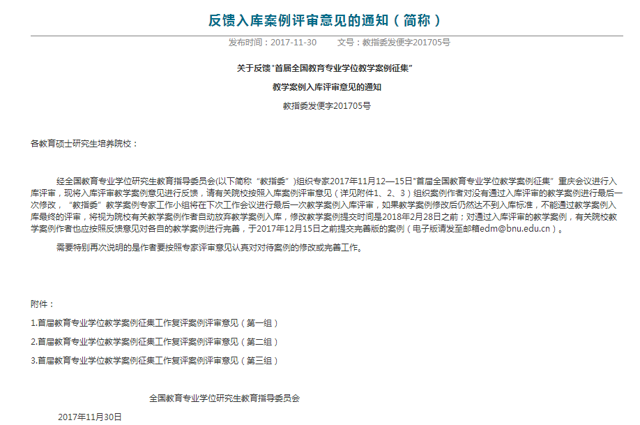 近日,全國教育專業學位研究生教育指導委員會發布了《關于反饋"首屆全國教育專業學位教學案例征集”教學案例入庫評審意見的通知》,我校外國語學院李凱華、王云老師共同提交的《W老師的一堂高中英語任務型教學課》教學案例成功入選中國專業學位教學案例中心案例庫,成為我校首篇入庫案例。