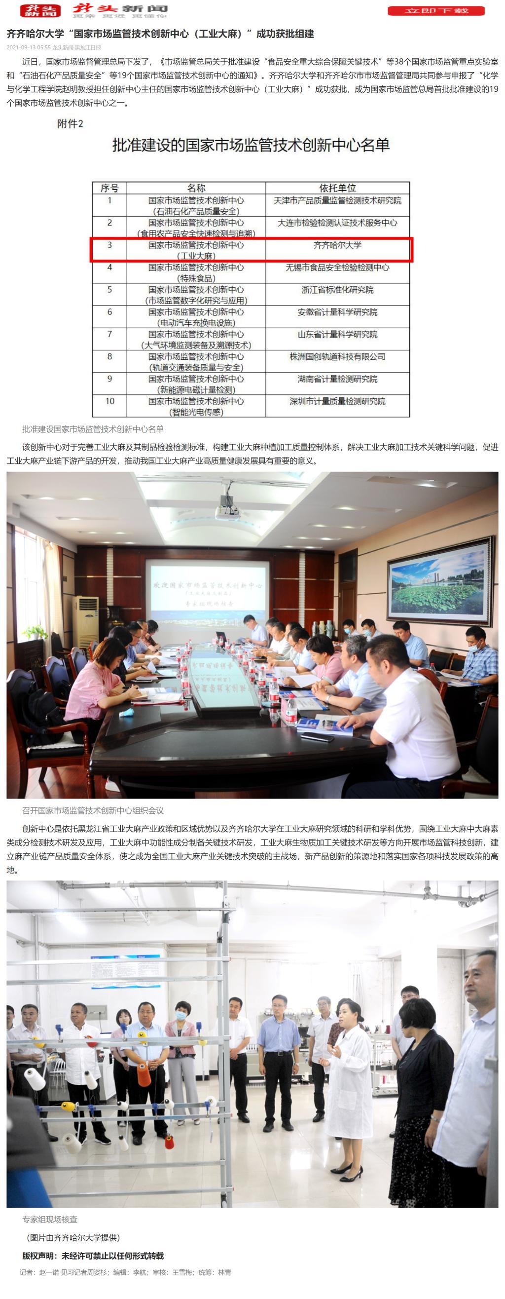 下一條:【央廣網】齊齊哈爾大學“國家市場監管技術創新中心(工業大麻)”成功獲批