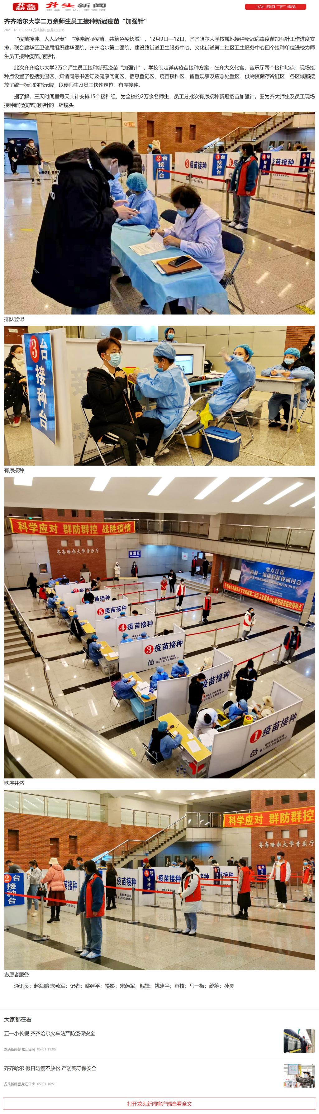 上一條:【人民網】齊齊哈爾大學兩萬余名師生員工接種新冠疫苗“加強針”