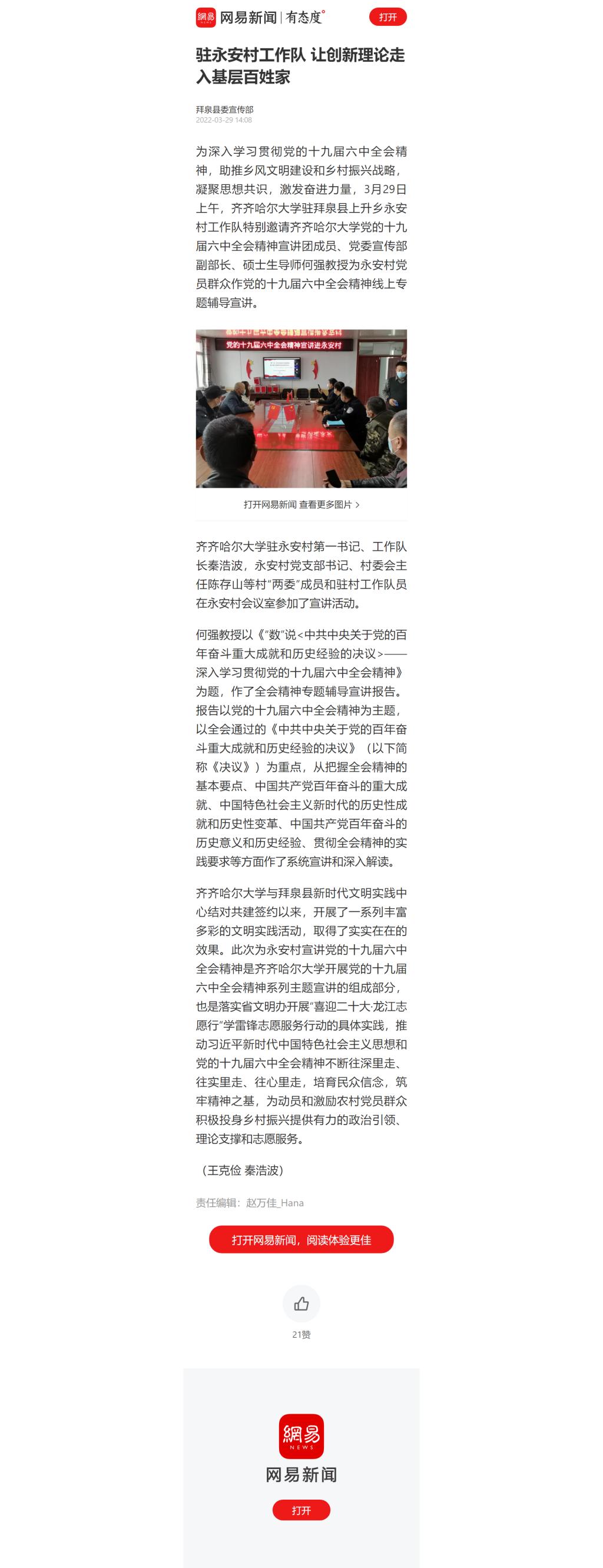 上一條:【人民網】齊齊哈爾大學駐拜泉縣永安村工作隊:讓黨的創新理論走入基層百姓家