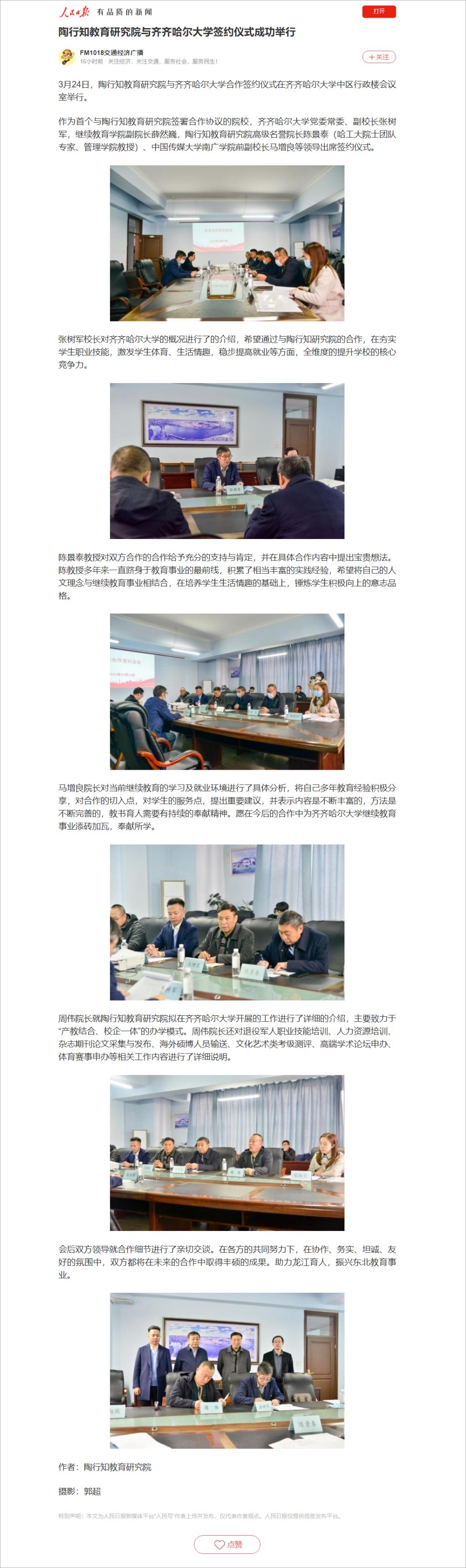 下一條:【中華網】陶行知教育研究院與齊齊哈爾大學簽訂合作協議