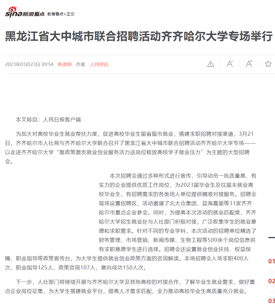 上一條:【人民日報】黑龍江省大中城市聯合招聘活動齊齊哈爾大學專場舉行