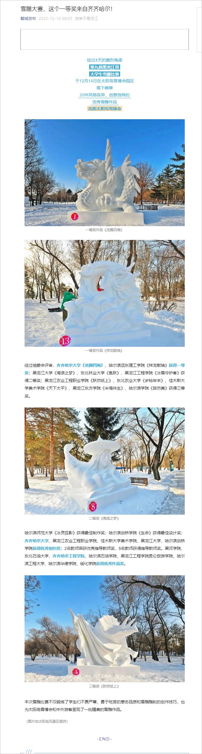 下一條:【黑龍江新聞網】第九屆黑龍江省大學生雪雕比賽落幕
