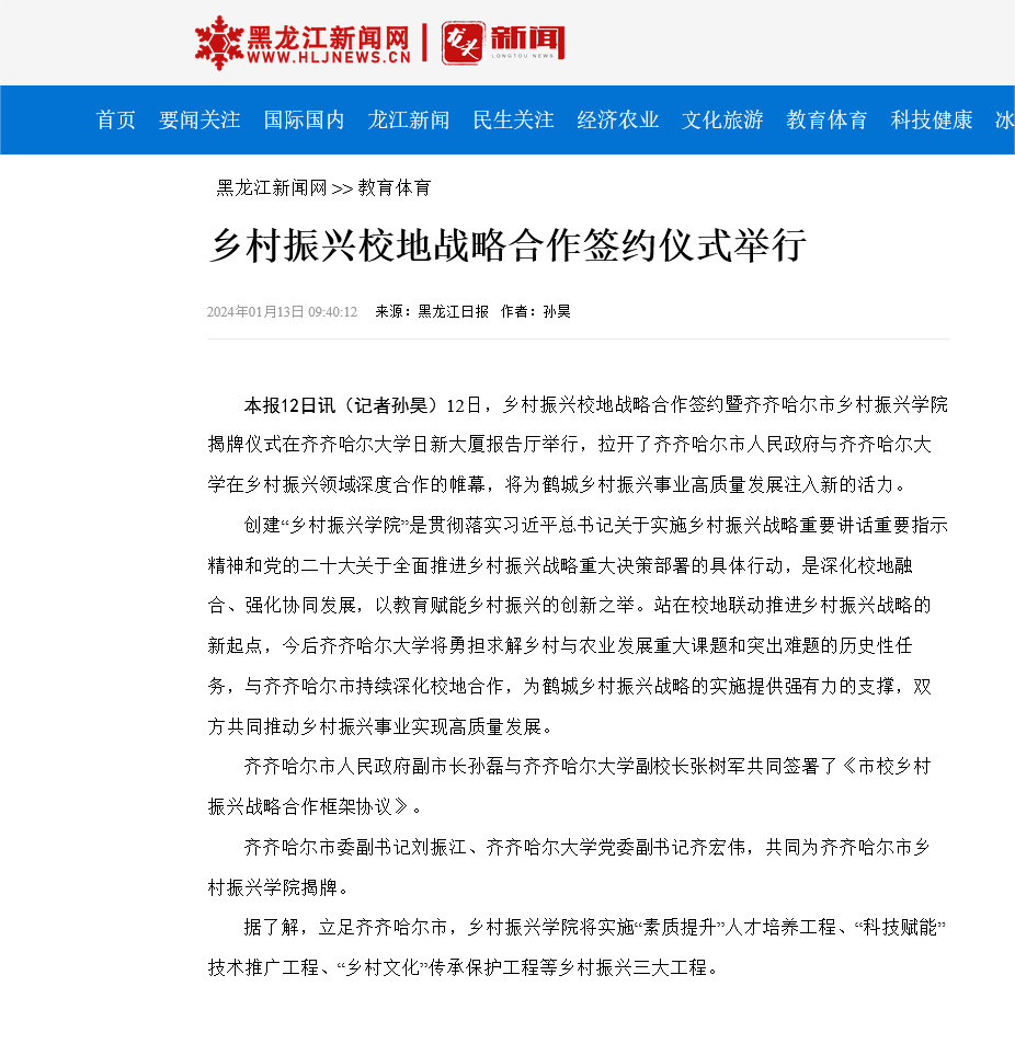 下一條:【龍頭新聞】揭牌!鄉村振興校地戰略合作簽約在齊齊哈爾舉行