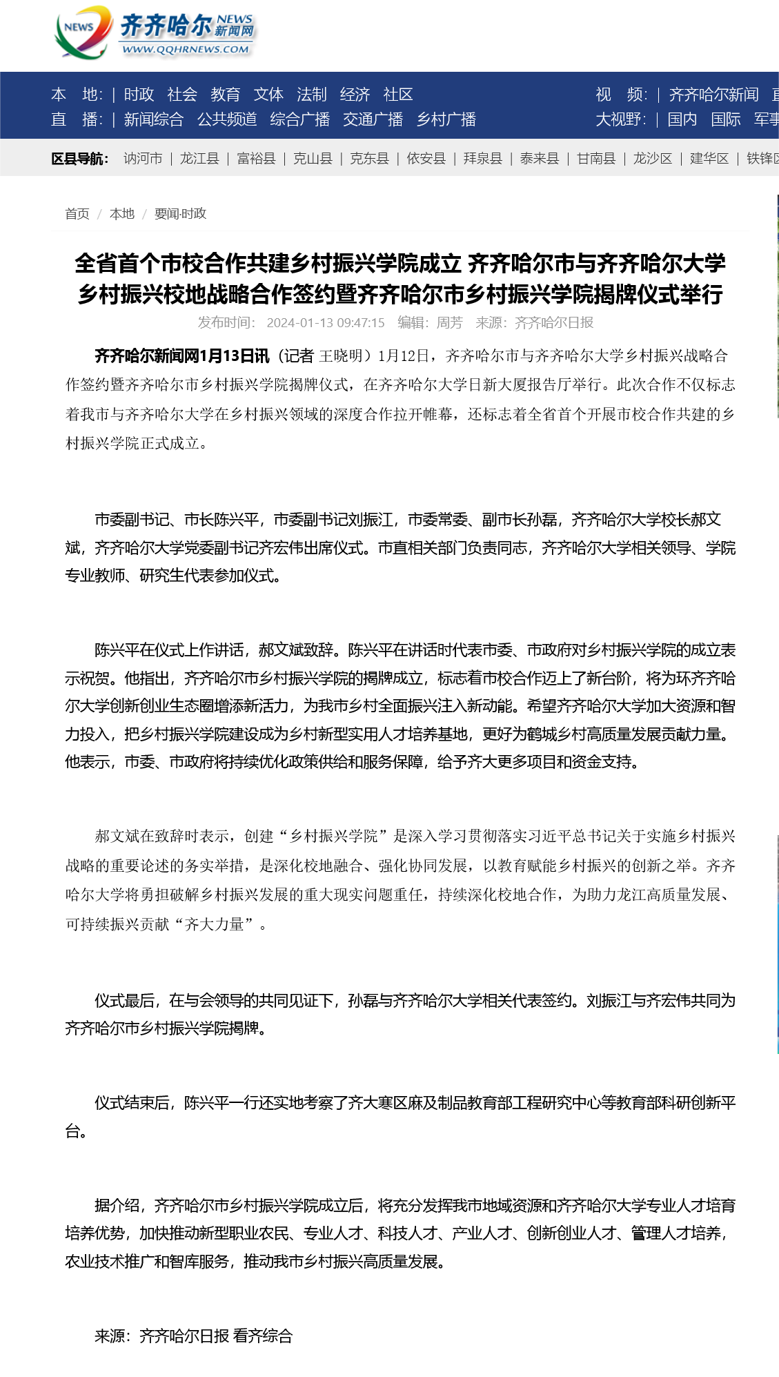 上一條:【齊齊哈爾新聞網】齊齊哈爾市人民政府與齊齊哈爾大學舉行校地戰略合作簽約暨揭牌儀式