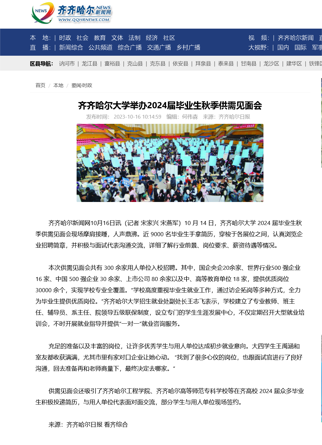 下一條:【齊齊哈爾新聞】齊齊哈爾大學舉行2024屆畢業生秋季供需見面會