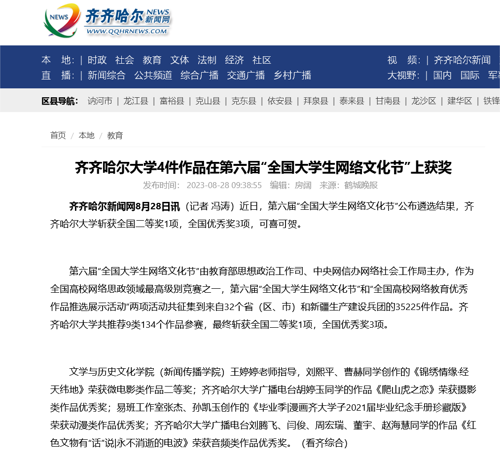 下一條:【鶴城晚報】齊齊哈爾大學又叒叕獲獎了!