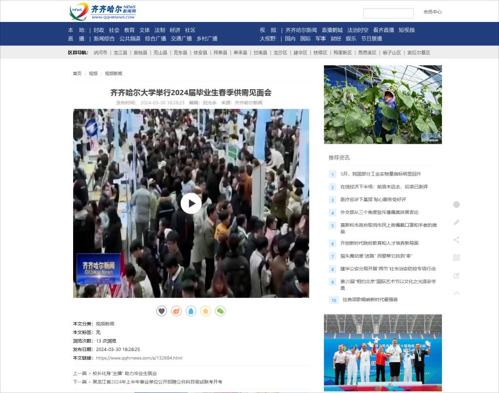 下一條:【齊齊哈爾新聞】齊齊哈爾大學2024屆畢業生春季供需見面會