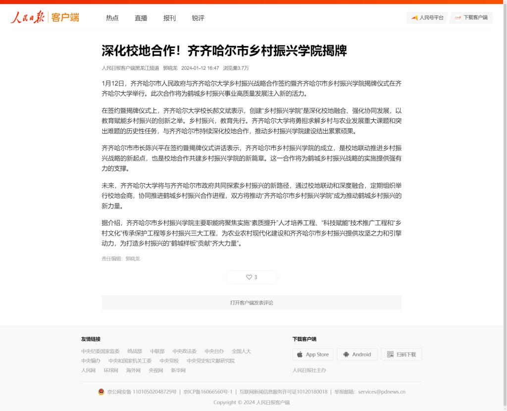 上一條:【光明日報】齊齊哈爾大學與齊齊哈爾市人民政府舉行校地戰略合作簽約暨揭牌儀式