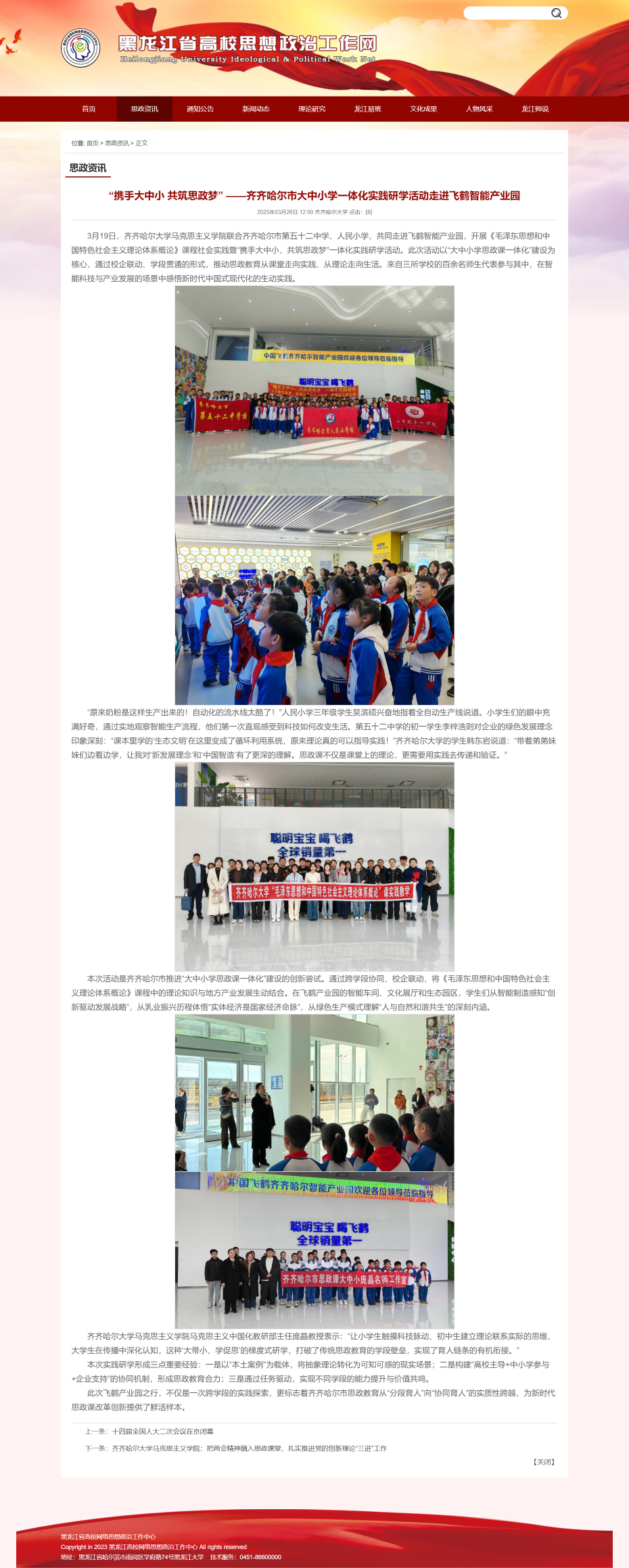 下一條:【黑龍江省高校思想政治工作網】齊齊哈爾大學馬克思主義學院:把兩會精神融入思政課堂,扎實推進黨的創新理論“三進”工作