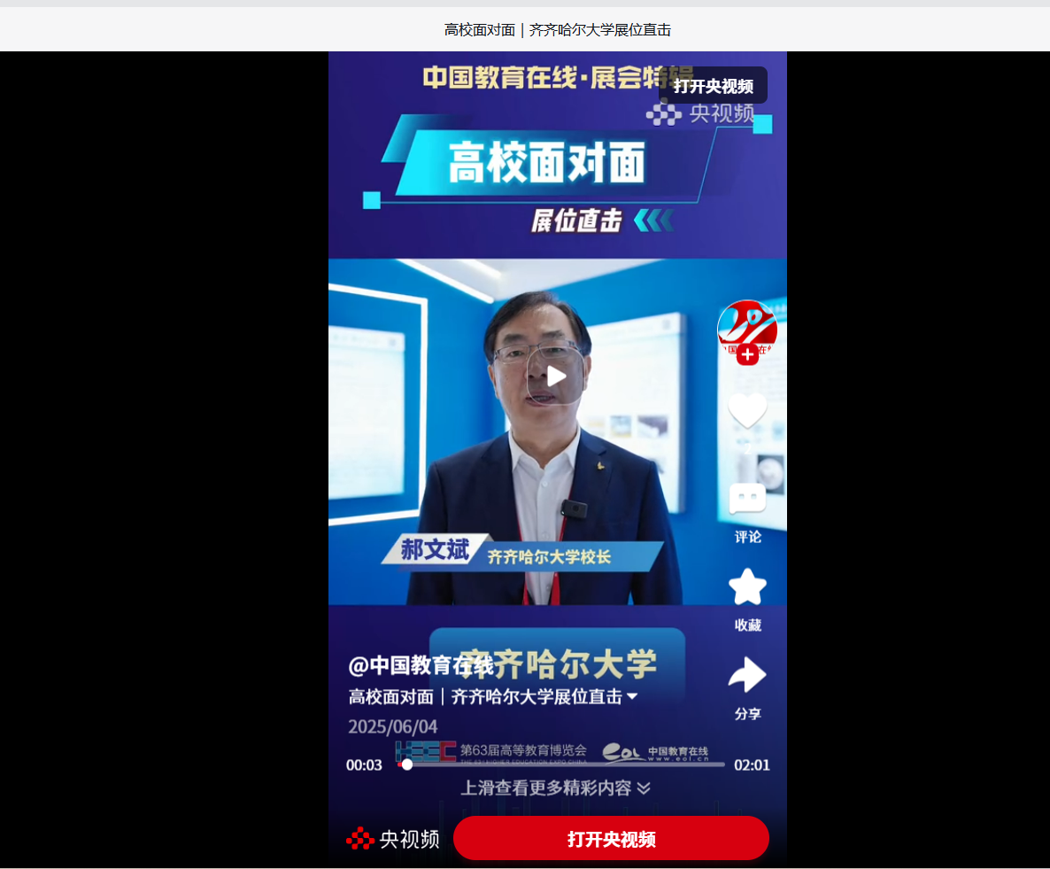 上一條:【強(qiáng)國號】立足地方、服務(wù)地方,齊齊哈爾大學(xué)攜產(chǎn)學(xué)研科技成果亮相高博會