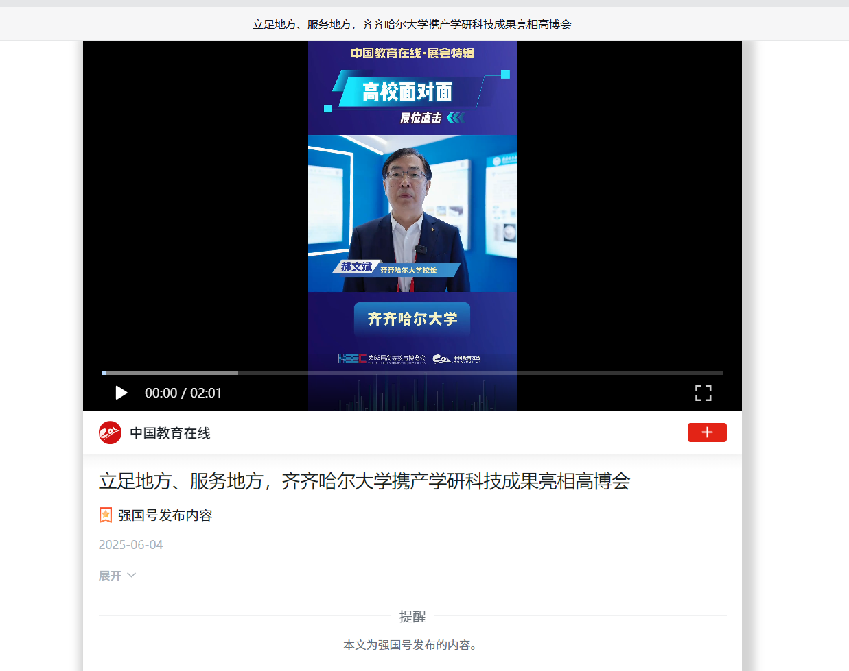 下一條:【央視頻】高校面對面丨齊齊哈爾大學展位直擊